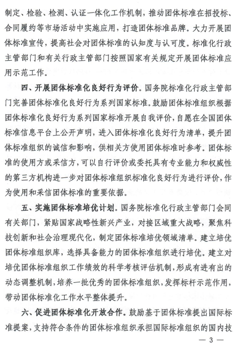 為貫徹落實《國家標準化發展綱要》,規范團體標準化工作,促進團體標準優質發展,經國務院標準化協調推進部際聯席會議全體會議審議通過,國家標準化管理委員會等十七部門聯合印發了《關于促進團體標準規范優質發展的意見》。