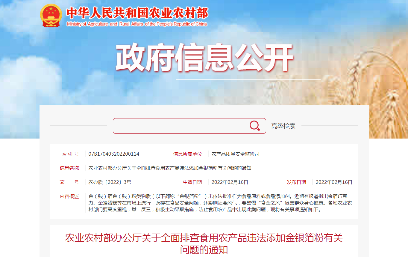 各省、自治區、直轄市及計劃單列市農業農村(農牧)、畜牧獸醫、漁業廳(局、委),新疆生產建設兵團農業農村局: 金(銀)箔金(銀)粉類物質(以下簡稱“金銀箔粉&...