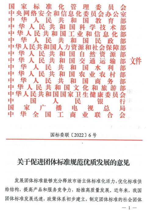 為貫徹落實《國家標準化發展綱要》,規范團體標準化工作,促進團體標準優質發展,經國務院標準化協調推進部際聯席會議全體會議審議通過,國家標準化管理委員會等十七部門...