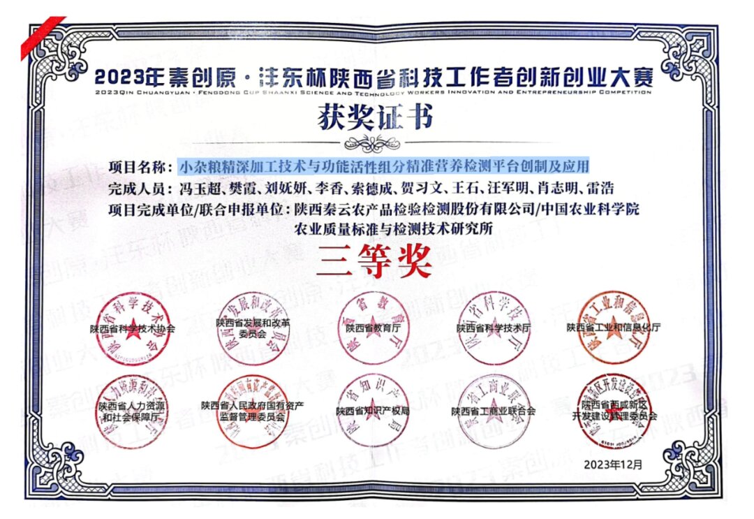 近日,2023年秦創原·灃東杯陜西省科技工作者創新創業大賽成績出爐,由陜西秦云農產品檢驗檢測股份有限公司和中國農業科學院農業質量標準與檢測技術研究所聯合申...