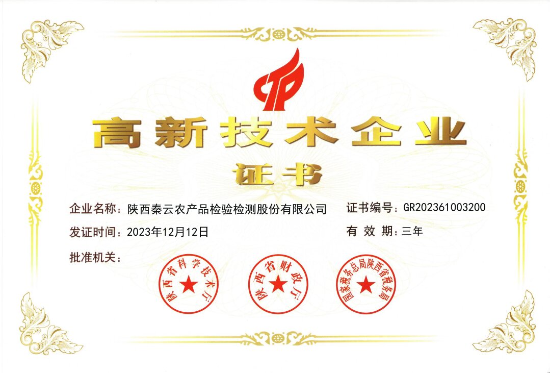 日前,陜西省科學技術廳發布公示,根據《高新技術企業認定管理辦法》和《高新技術企業認定管理工作指引》有關規定,陜西秦云農產品檢驗檢測股份有限公司順利通過陜西省...