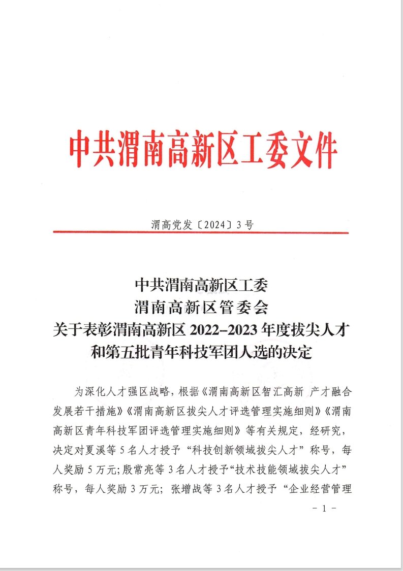 2月20日,渭南高新區召開2024年工作會議陜西秦云農產品檢驗檢測股份有限公司研發部主任賀習文喜獲 “渭南高新區2022—2023年度拔尖人才(技術技能領域)”榮...